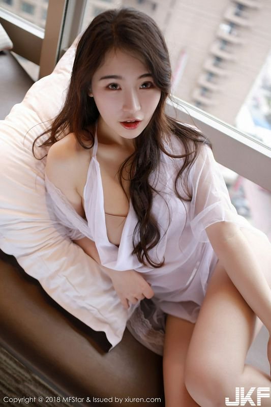 嫩模宅兔兔白色薄纱透视秀白嫩肌肤丁字裤翘臀诱惑写真